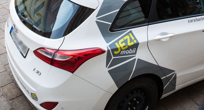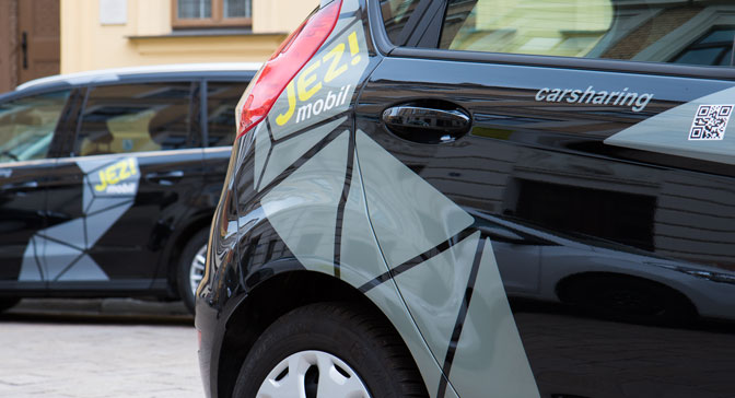 Einfach, schnell und schick. Die JEZ! mobil-Fahrzeugflotte in Halle fällt auf und gefällt. Das Design erfüllt Deko und Branding in einem. | mehr