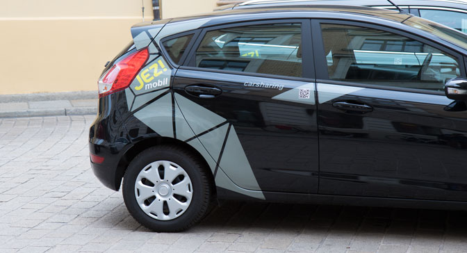 Einfach, schnell und schick. Die JEZ! mobil-Fahrzeugflotte in Halle fällt auf und gefällt. Das Design erfüllt Deko und Branding in einem. | mehr